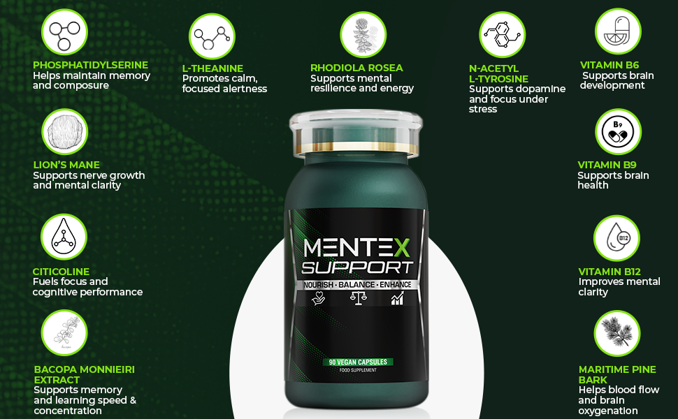 Every Mentex capsule is designed with intent, combining clinically studied ingredients and natural extracts to support cognitive performance without compromise